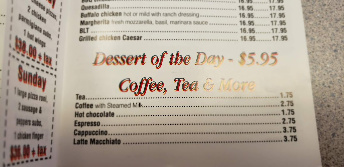 You can’t go wrong with a slice of pizza topped just the way you like it, and if you’re feeling adventurous, there are plenty of specialty pies to explore. The menu also features a selection of appetizers to kick things off-think crispy bruschetta or mozzarella sticks. For a lighter touch, fresh salads and zesty dressings are the perfect balance. No matter what you choose, you're in for an unforgettable meal, whether you're grabbing a quick bite or sitting down with friends for a laid-back dinner.